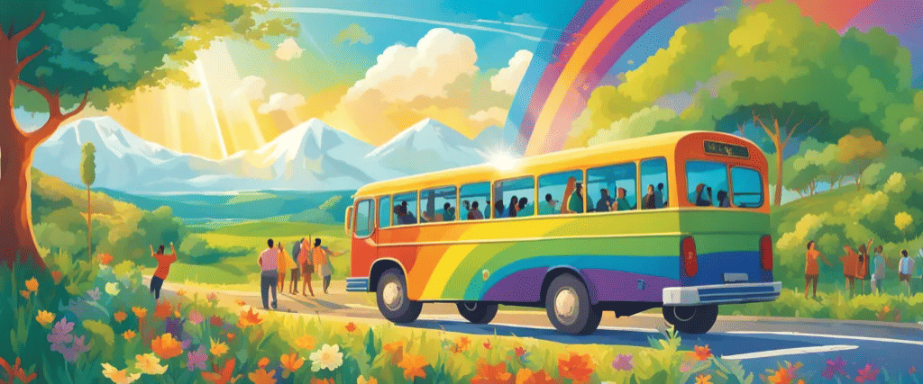 On a dreary Monday, George found himself stuck in a rut, his life dimmed by negativity. Enter Joy, the exuberant bus driver of the Energy Bus. With a warm smile and an infectious spirit, she invited him aboard her vibrant journey of positivity and purpose. As the bus rolled along, George discovered the “10 Rules for the Ride of Your Life,” inspiring him to harness the power of optimism.